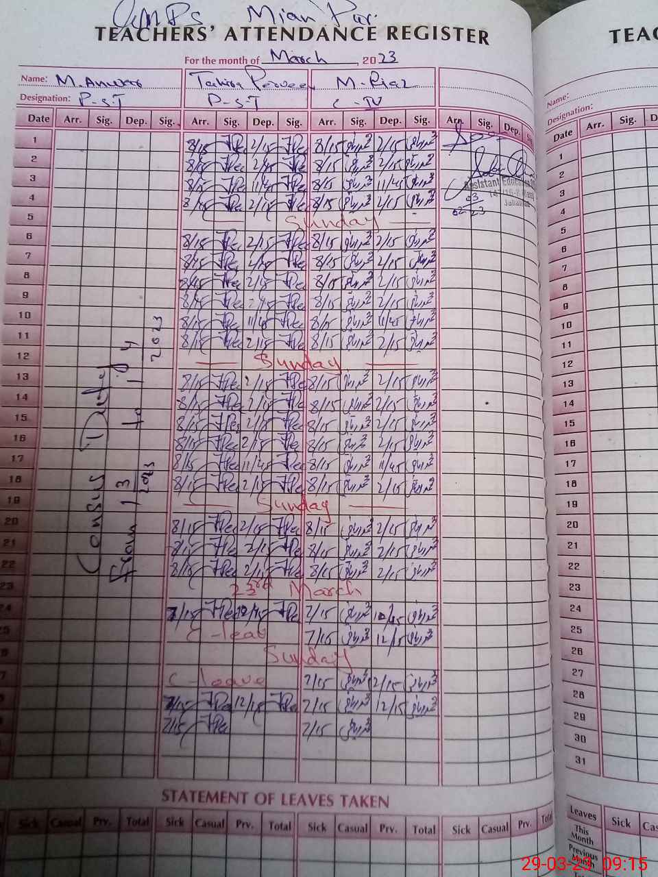 | Name: Sh**** No**** Designation: (School Headmaster's/Headmistress's) ESE, (SCI+MATH) Phone/Cell Number: 03**** |