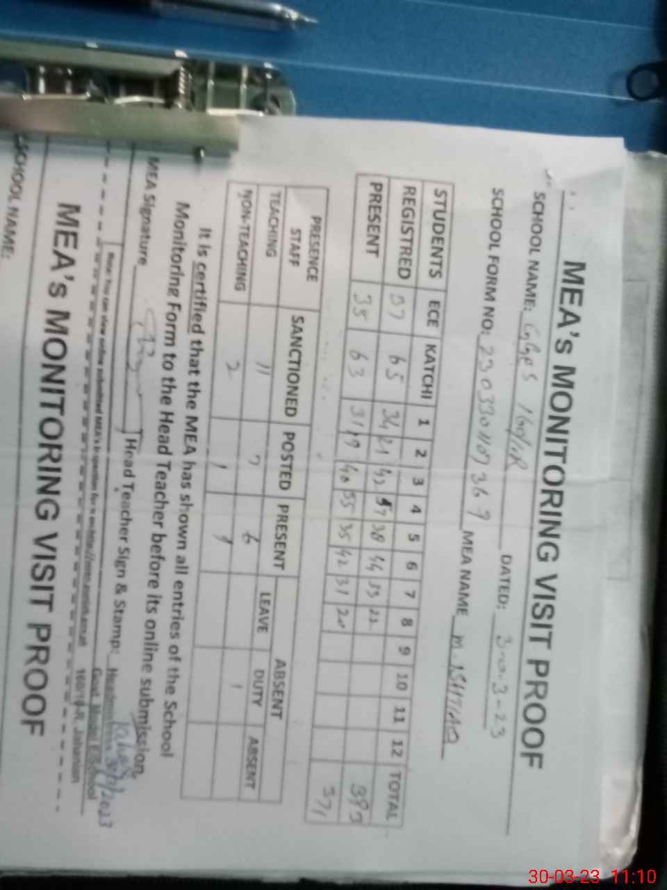 | Monitoring Date: 30-03-2023 | Start Time: 30-03-2023 10:34 AM | End Time: 30-03-2023 11:12 AM | Name of MEA: M.Is**** (S**** 03**** | |