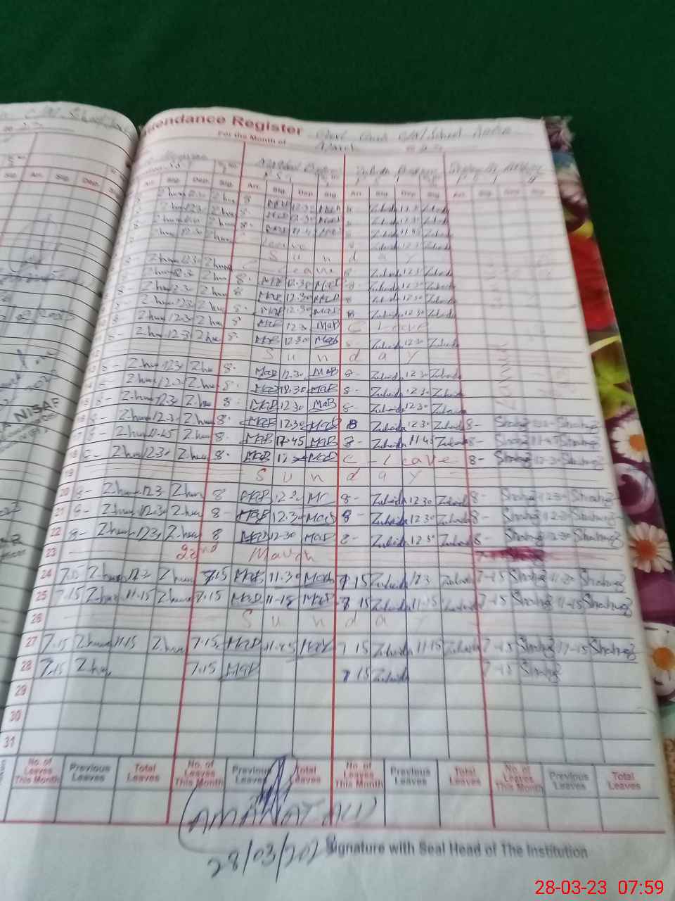 | 35**** | Mu**** Ra**** | NIBE QASID | Regular | 0 | 0 | 30 | 0 | 0 | 0 | 0 | 0 | 0 | Absent (Un-Authorized) |
