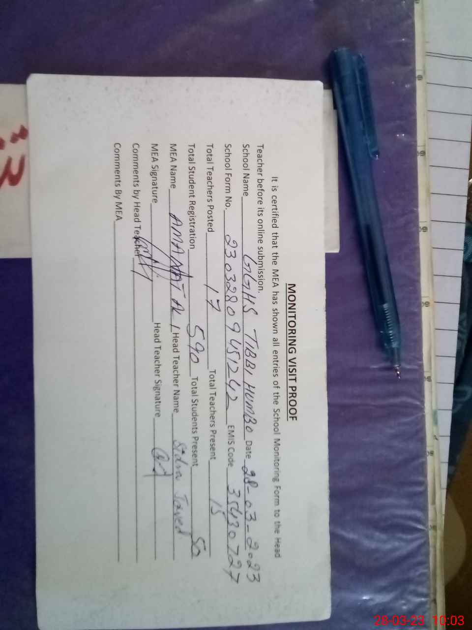 | EMIS Code: 35430727 | Name of School: GGHS TIBBI HUMBO CHAK NO 578 | |||