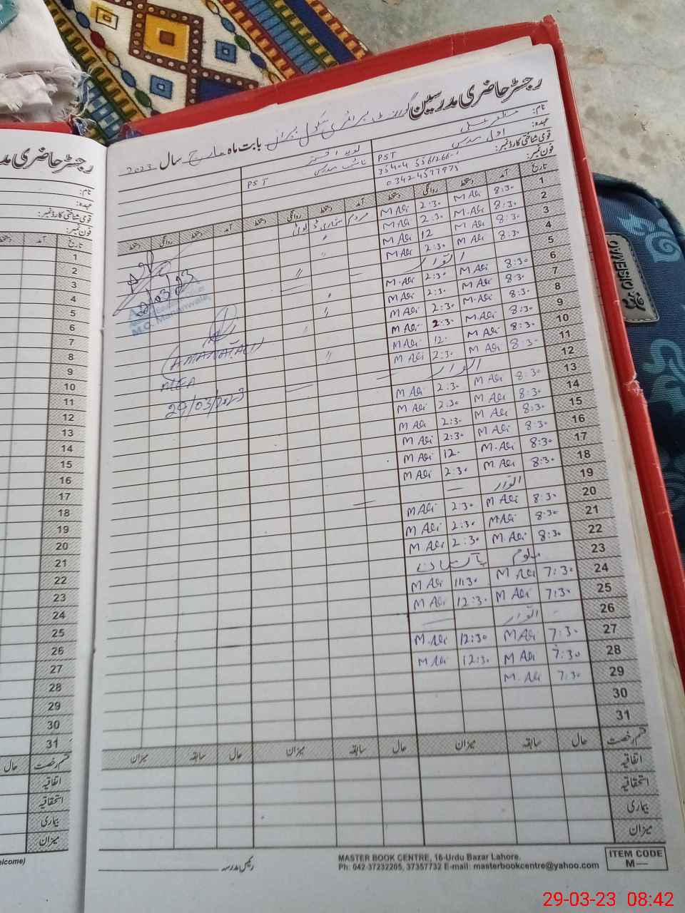 | Name: Mu**** Al**** Designation: (School Headmaster's/Headmistress's) PST Phone/Cell Number: 03**** |