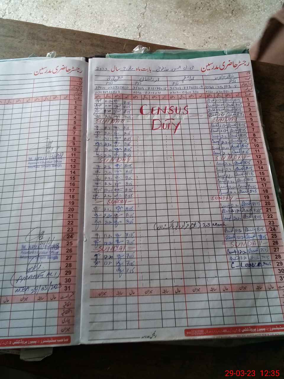 | Name: Mu**** Az**** Designation: (School Headmaster's/Headmistress's) PST Phone/Cell Number: 03**** |