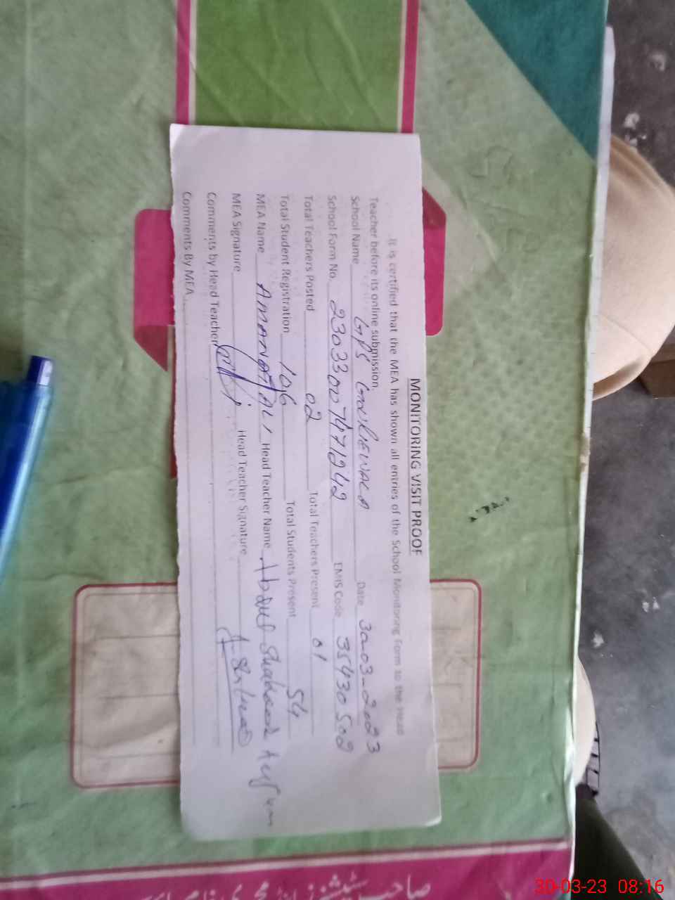 | EMIS Code: 35430502 | Name of School: GPS GORAI WALA | |||