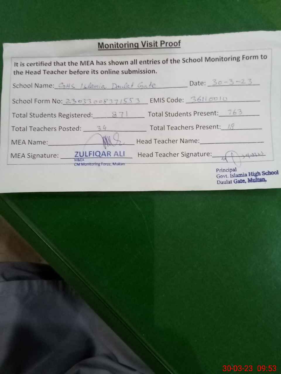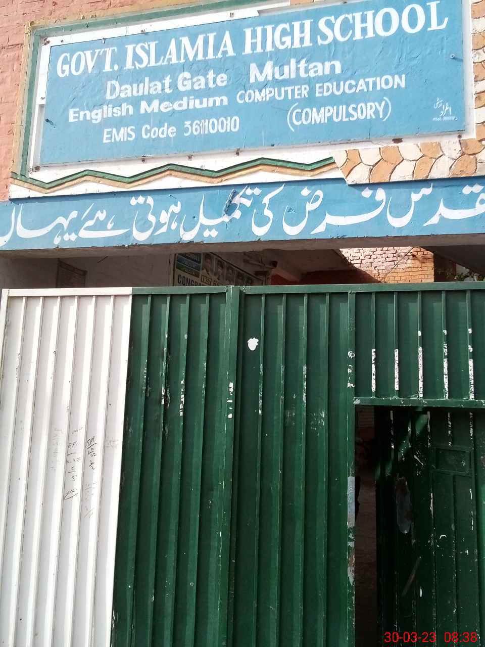 | EMIS Code: 36110010 | Name of School: GHS ISLAMIA DAULAT GATE MULTAN | |||