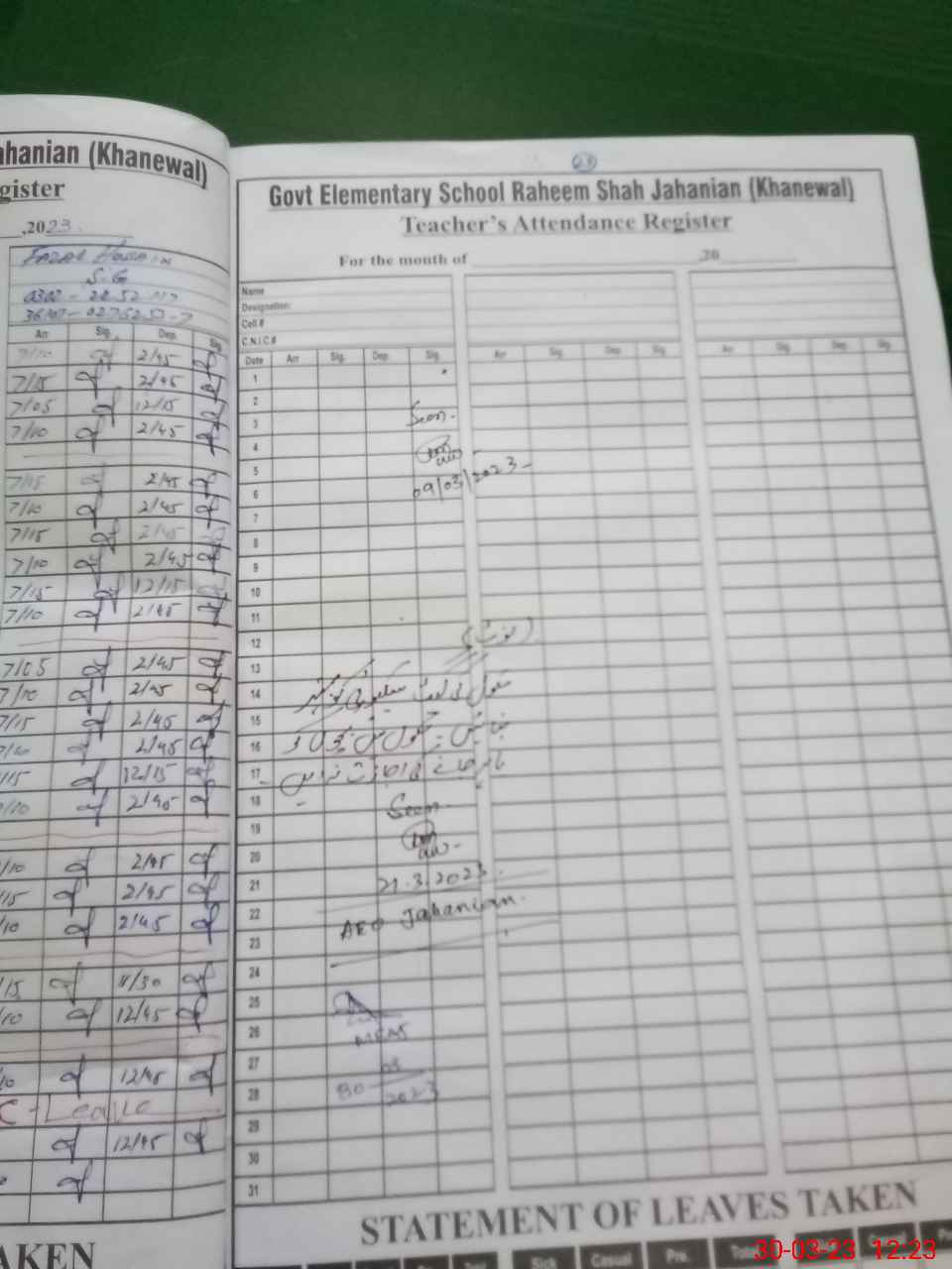 | Name: SH**** IQ**** Designation: (School Headmaster's/Headmistress's) SST(G) Phone/Cell Number: 03**** |