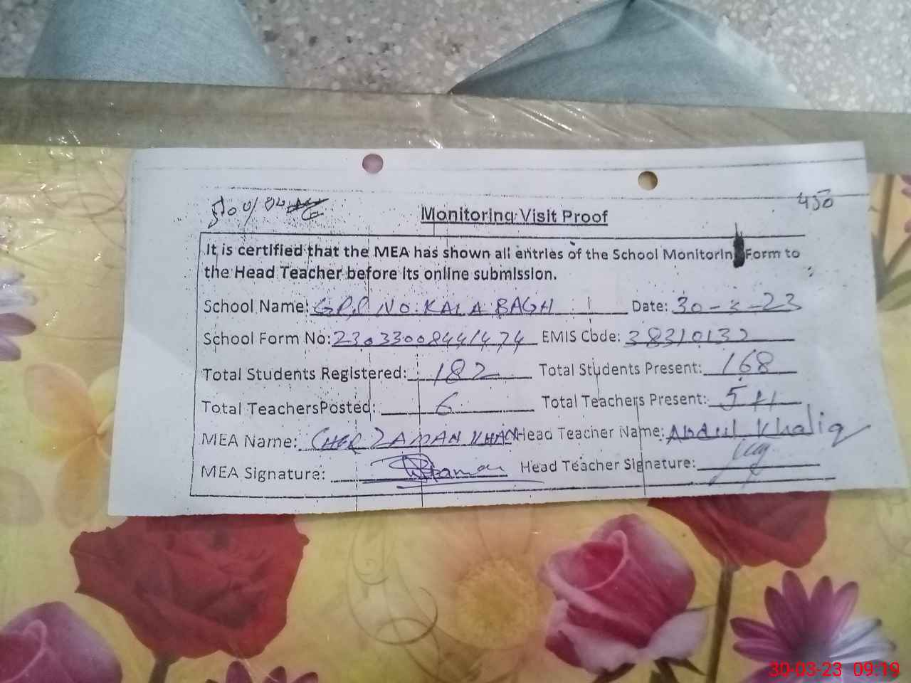 | EMIS Code: 38310132 | Name of School: GPS NO. 1 KALA BAGH | |||