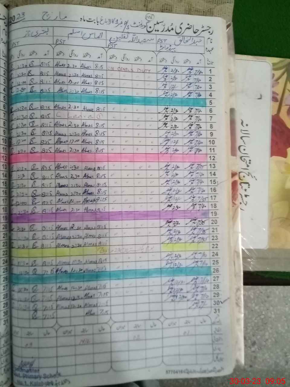 | CNIC | Full Name | Designation | R/C | Absence During Last Calender Month |