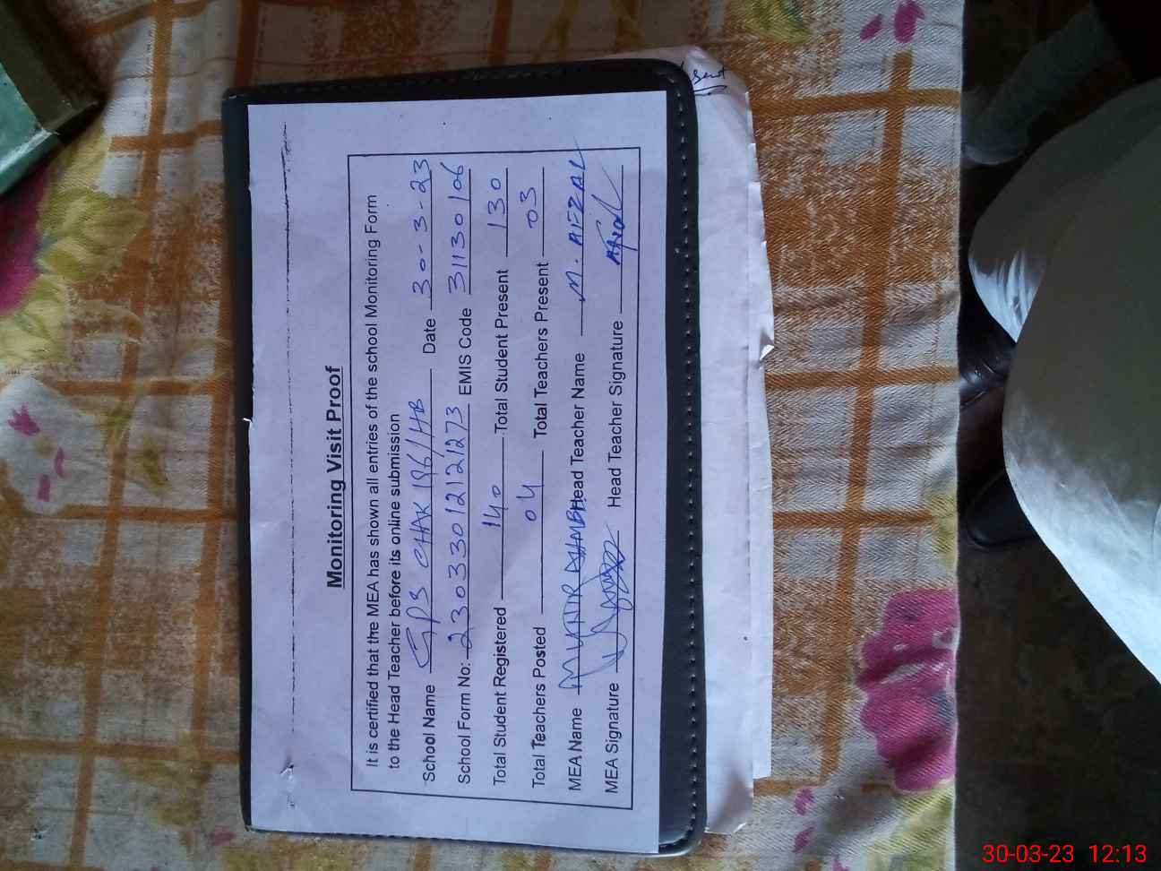 | Attendance Register | Head Teacher | MEA with School | Visit Proof |
