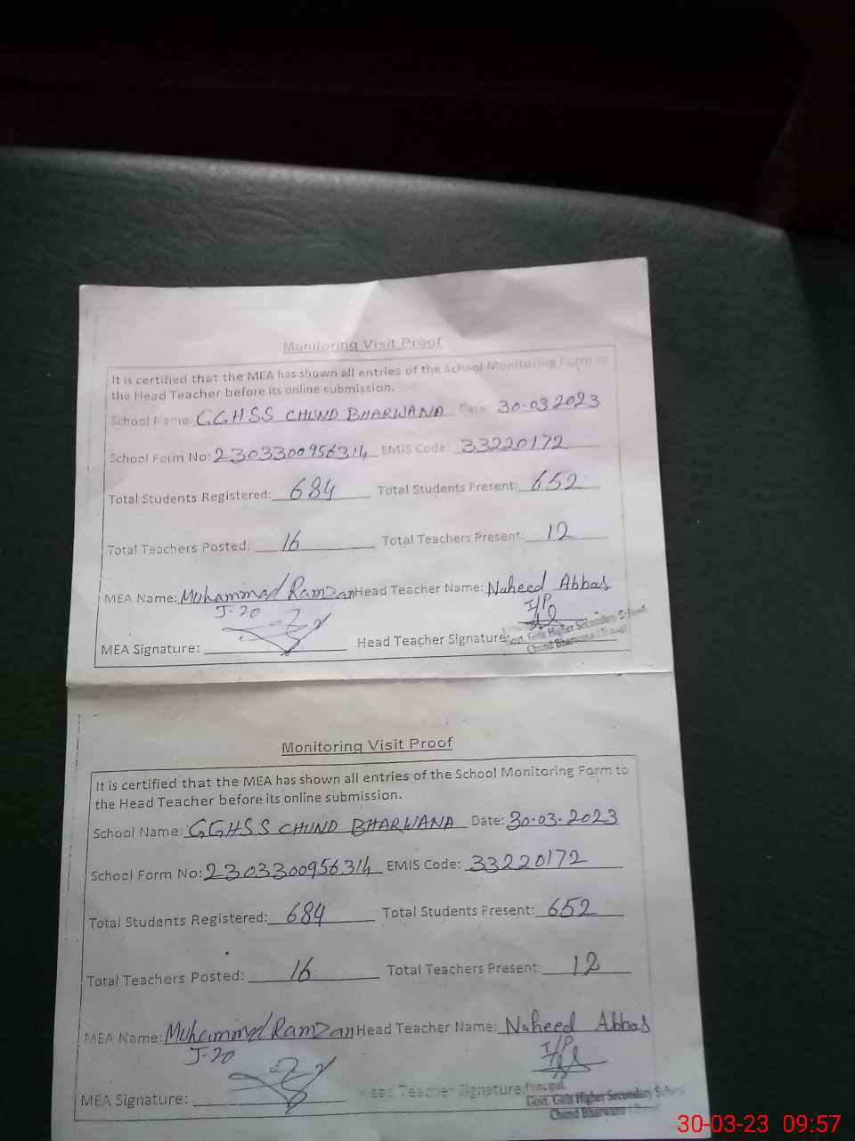 | EMIS Code: 33220172 | Name of School: GGHSS CHUND BHARWANA | |||