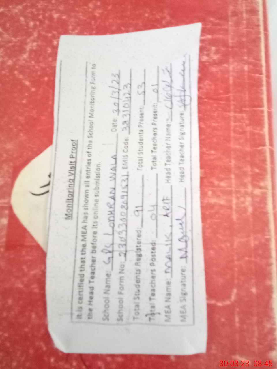 | EMIS Code: 38310423 | Name of School: GPS LODHRAN WALA | |||