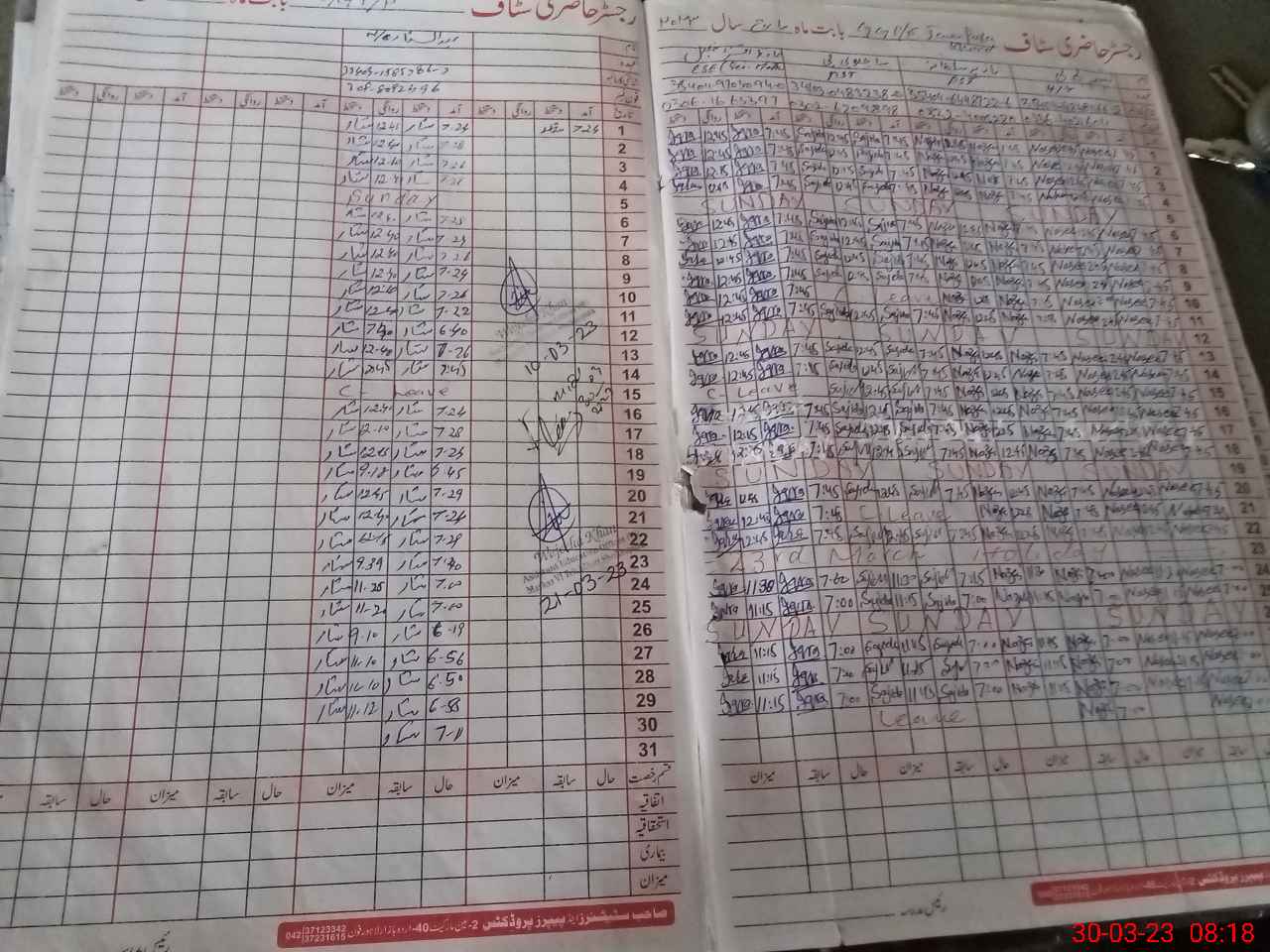 | CNIC | Full Name | Designation | R/C | Absence During Last Calender Month |