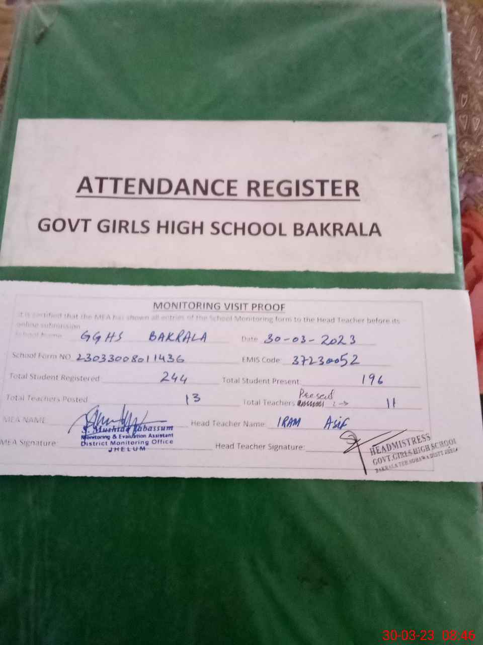 | EMIS Code: 37230052 | Name of School: GGHS BAKRALA | |||