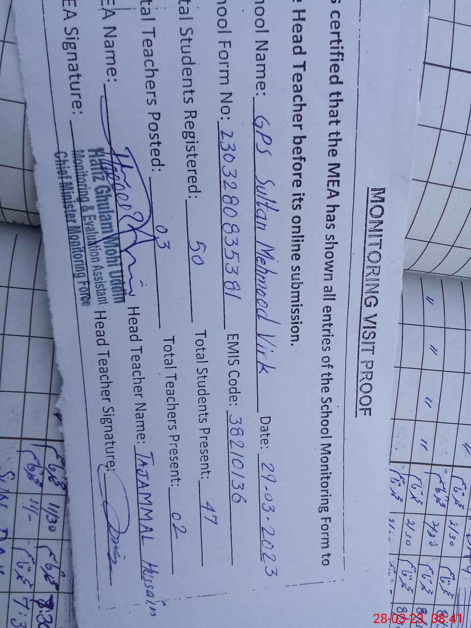 | EMIS Code: 38210136 | Name of School: GPS SULTAN MEHMOOD VIRK | |||