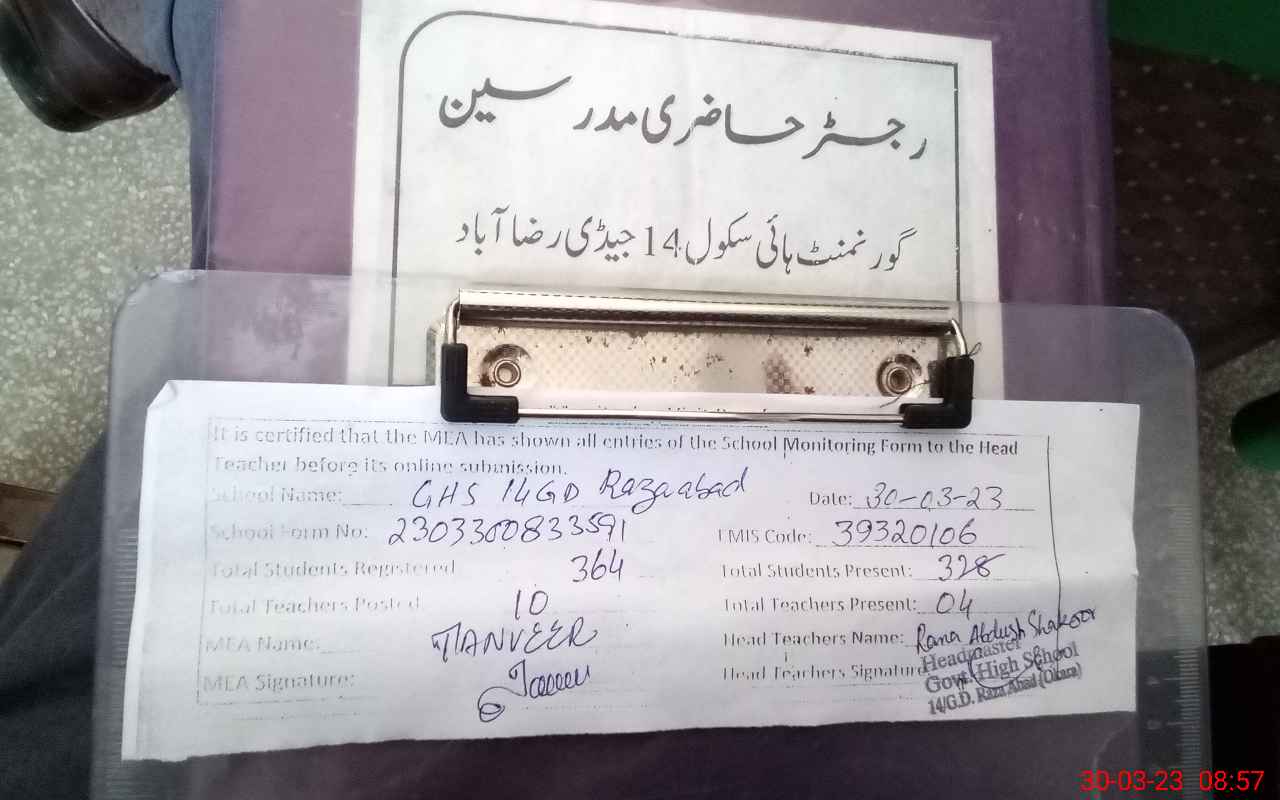 | EMIS Code: 39320106 | Name of School: GHS CHAK NO. 14/GD RAZA ABAD | |||