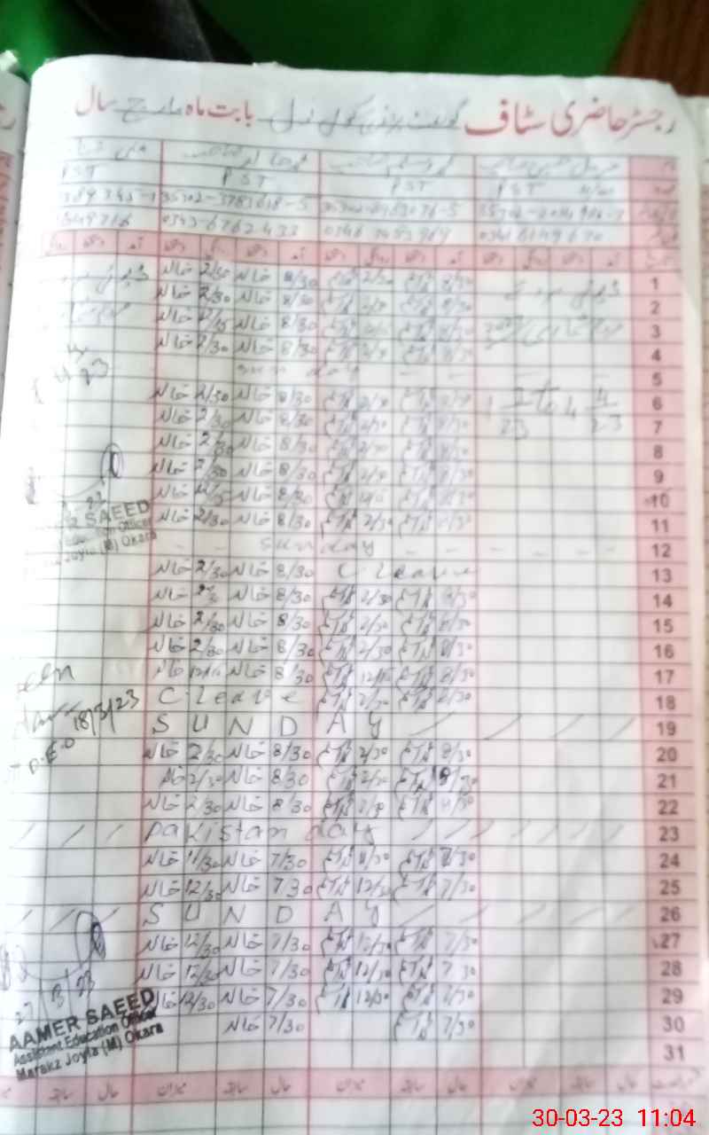 | Name: MU**** HU**** Designation: (School Headmaster's/Headmistress's) PTC/JV Phone/Cell Number: 03**** |