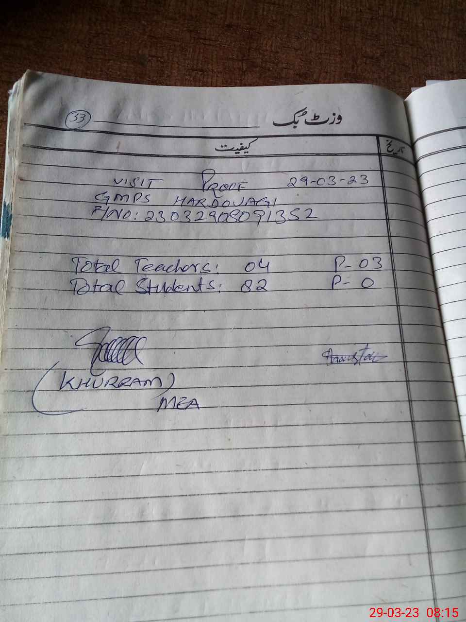 | Attendance Register | Head Teacher | MEA with School | Visit Proof |