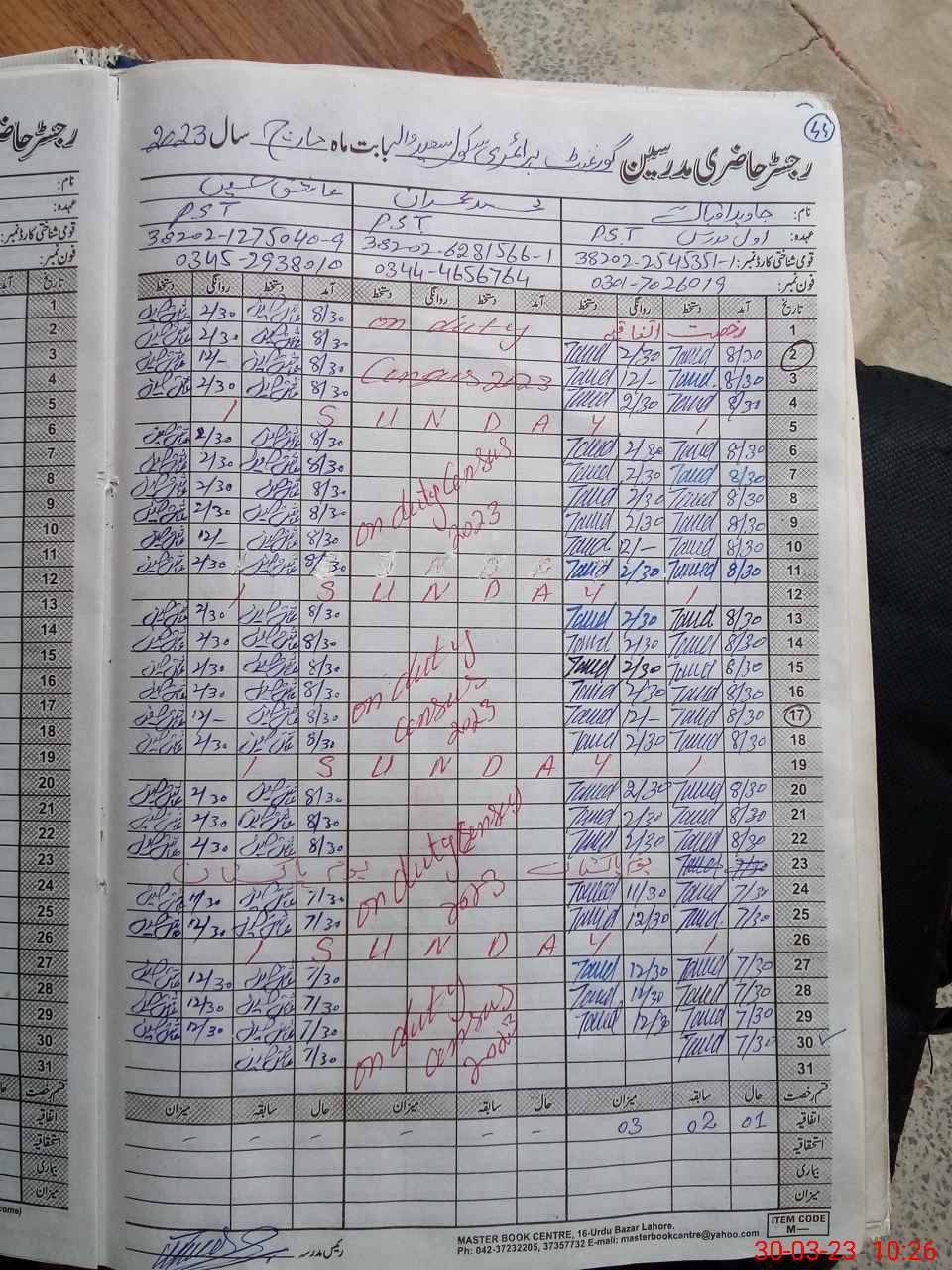 | CNIC | Full Name | Designation | R/C | Absence During Last Calender Month |