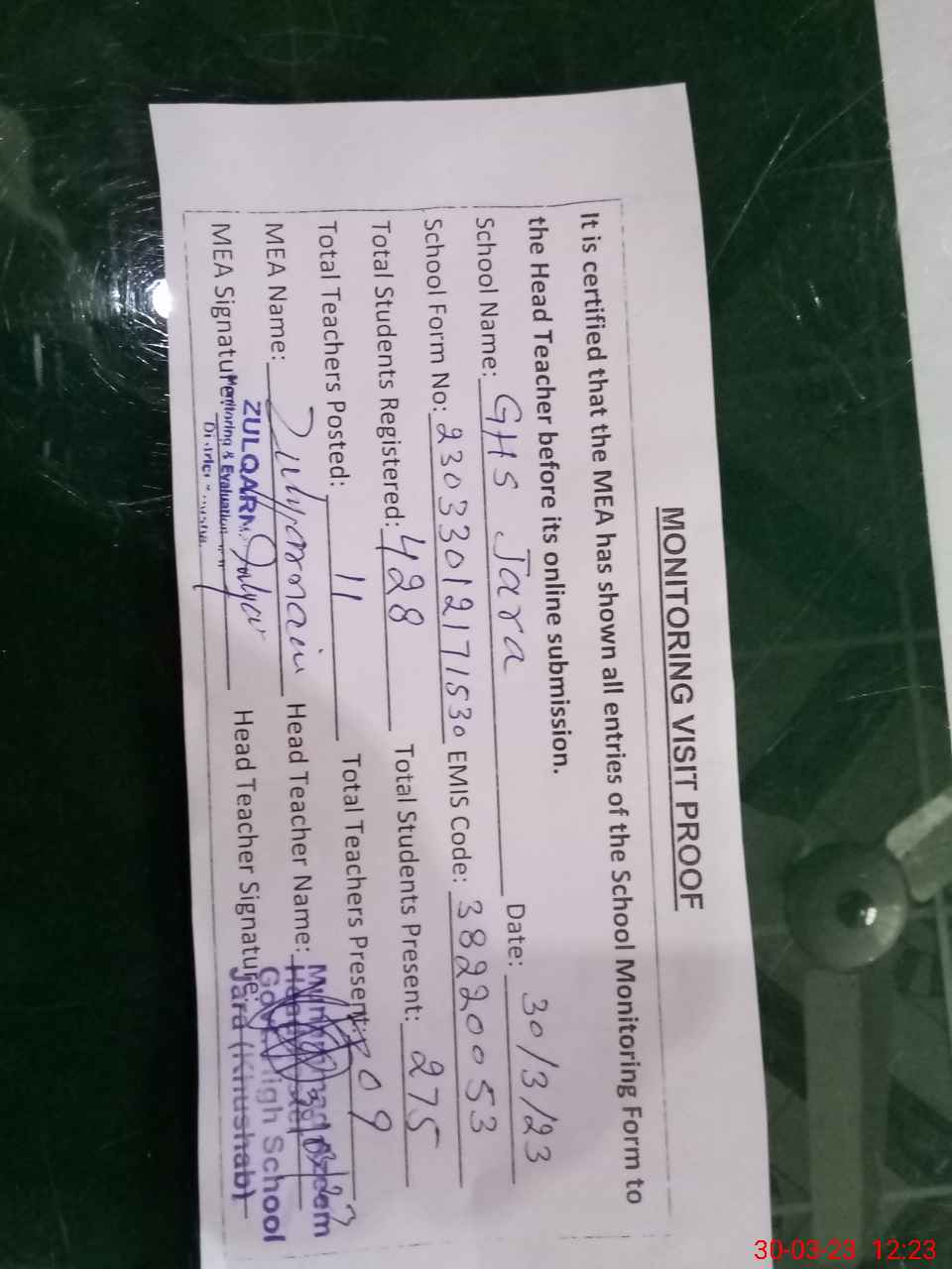 | EMIS Code: 38220053 | Name of School: GHS JARA | |||