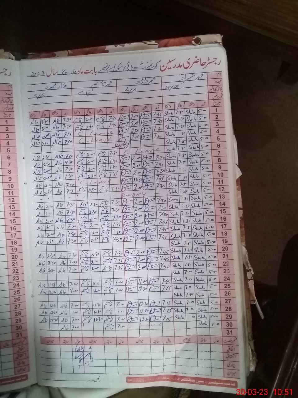 | CNIC | Full Name | Designation | R/C | Absence During Last Calender Month |