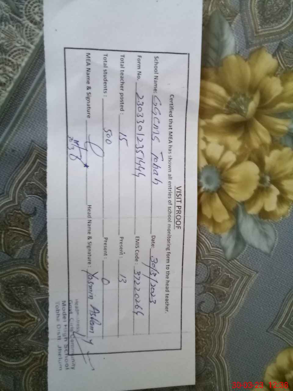 | EMIS Code: 37220264 | Name of School: GGCMHS TOBAH | |||