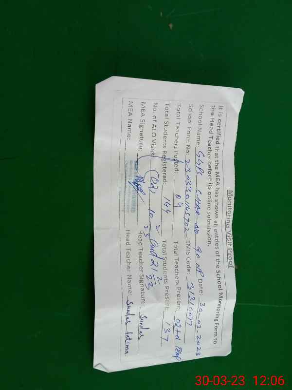 | EMIS Code: 31310077 | Name of School: GGPS CHAK NO. 90/NP | |||