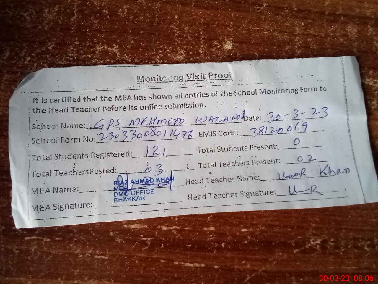 | EMIS Code: 38120069 | Name of School: GPS MEHMOOD WALA NO.1 | |||