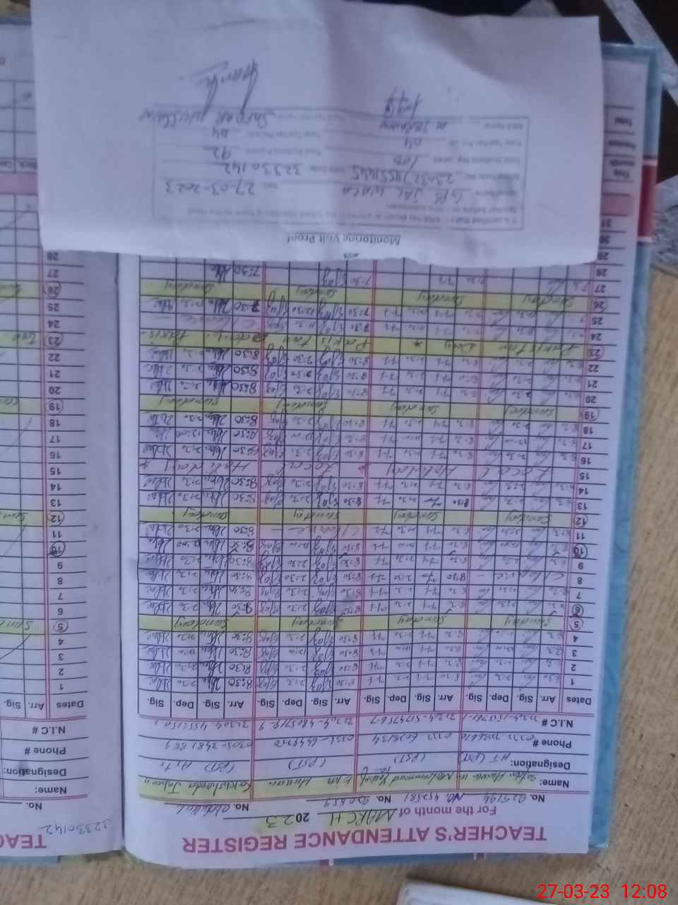 | Name: SA**** HU**** Designation: (School Headmaster's/Headmistress's) PST Phone/Cell Number: 03**** |