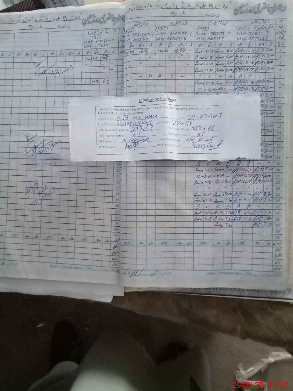 | Attendance Register | Head Teacher | MEA with School | Visit Proof |