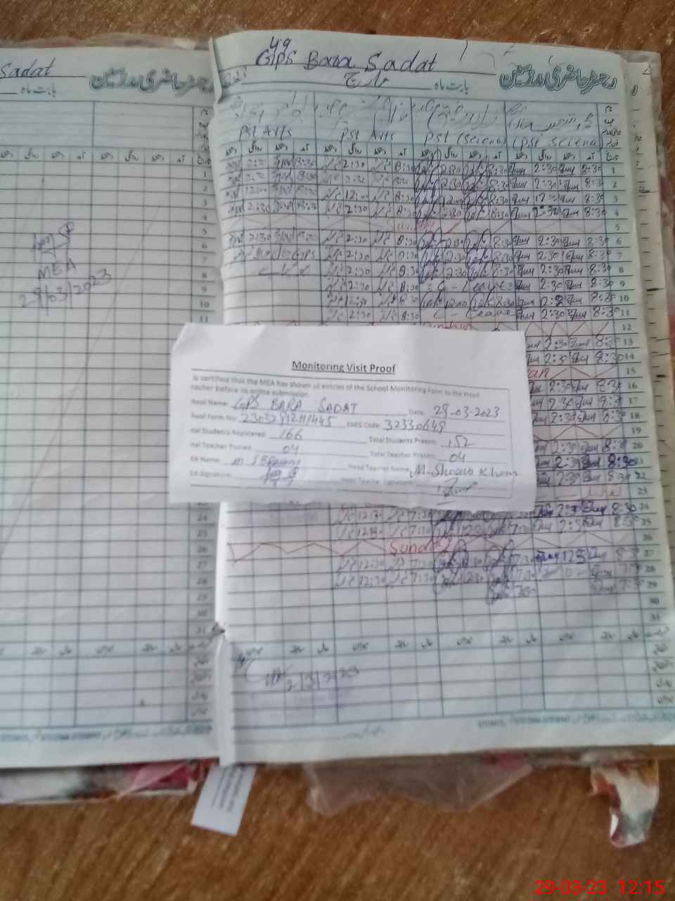 | EMIS Code: 32330649 | Name of School: GPS BARA SADAT | |||
