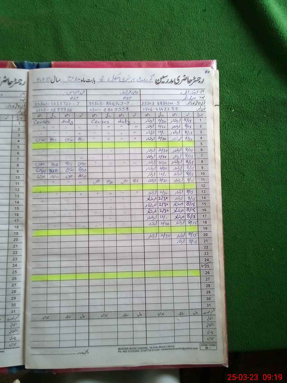 | Name: IR**** AH**** Designation: (School Headmaster's/Headmistress's) PTC/JV Phone/Cell Number: 03**** |