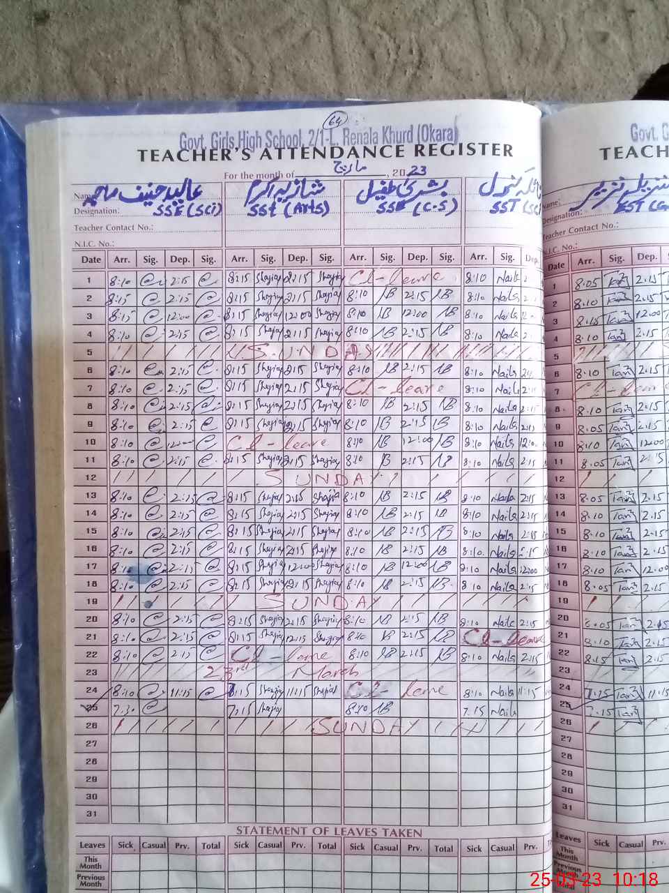 | CNIC | Full Name | Designation | R/C | Absence During Last Calender Month |