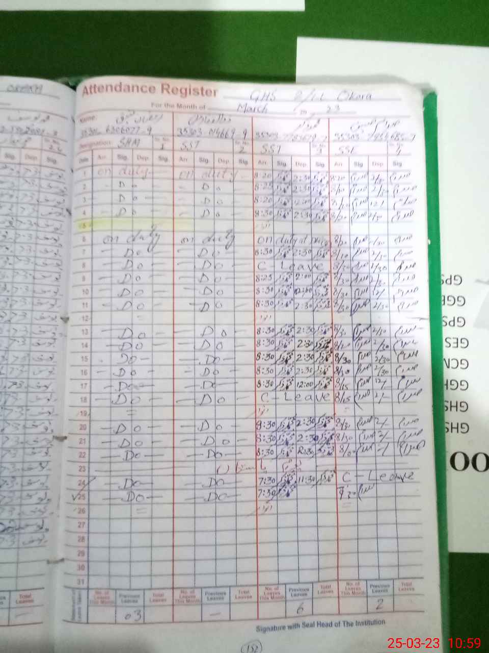 | CNIC | Full Name | Designation | R/C | Absence during last cal. month |