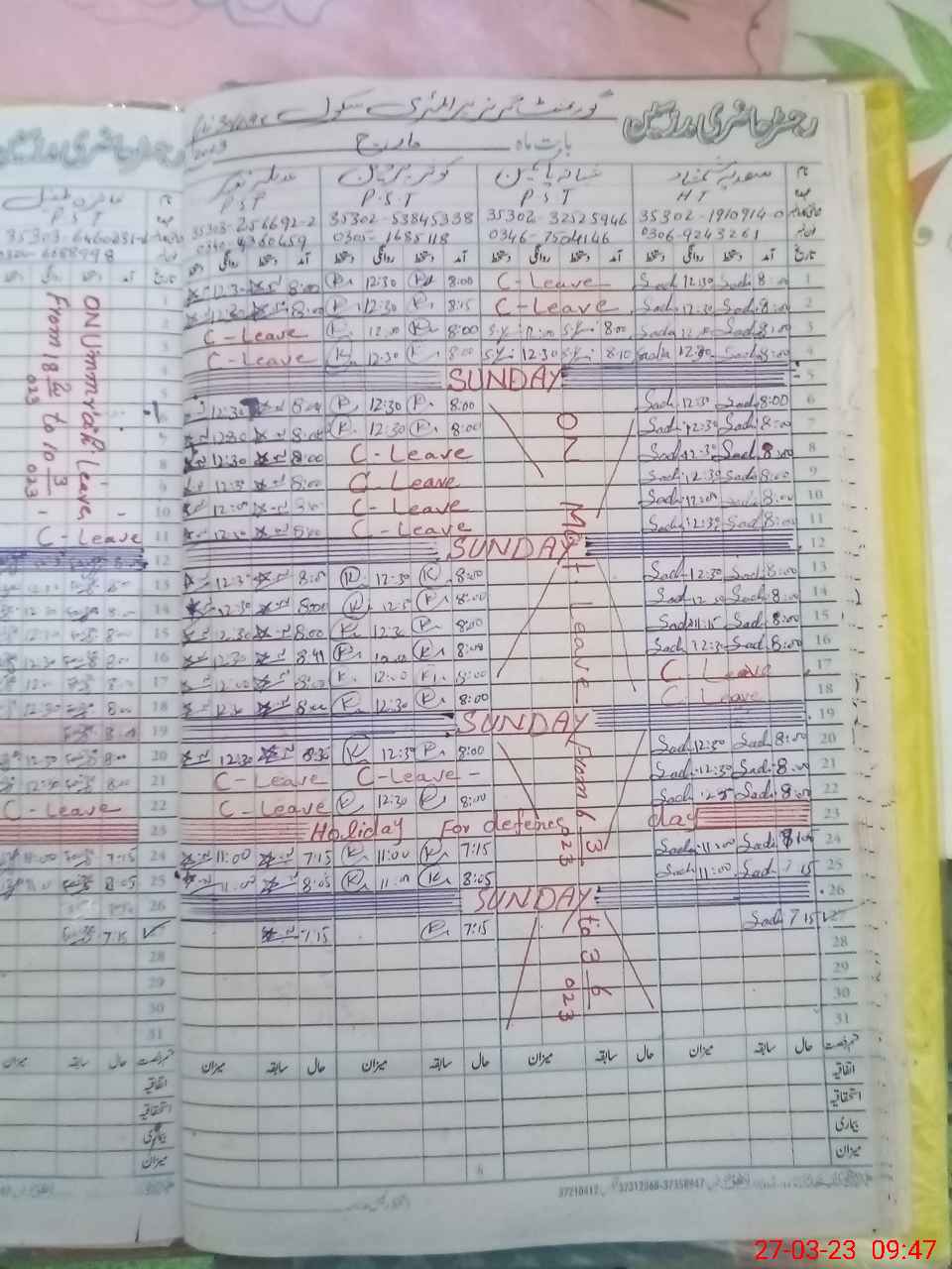 | 35**** | Sh**** Ya**** | PST | Regular | 0 | 0 | 0 | 0 | 0 | 0 | 0 | 0 | 0 | Maternity |