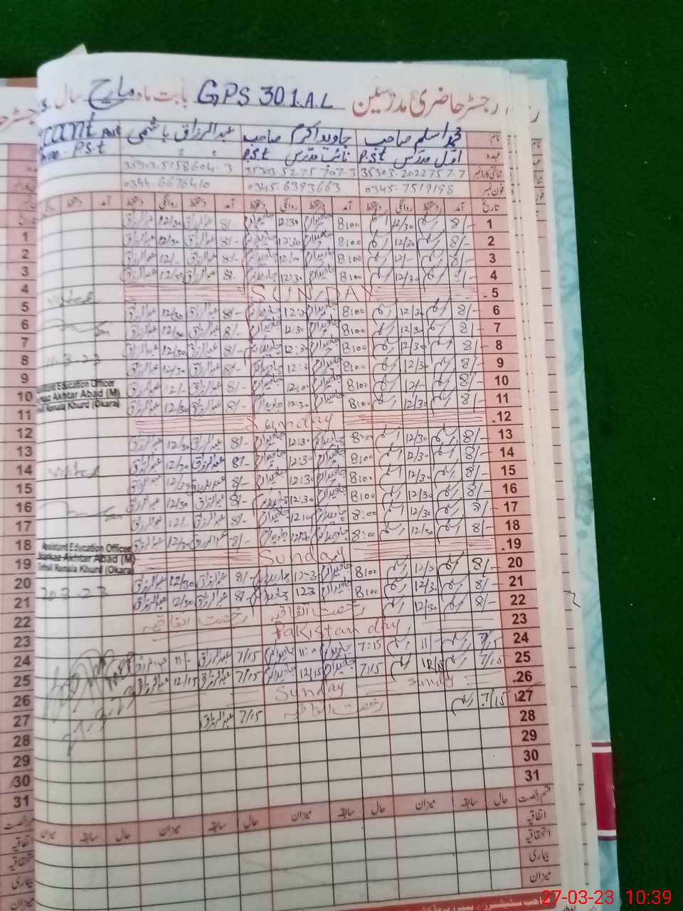 | Name: Za**** Ab**** Designation: (School Headmaster's/Headmistress's) PST Phone/Cell Number: 03**** |