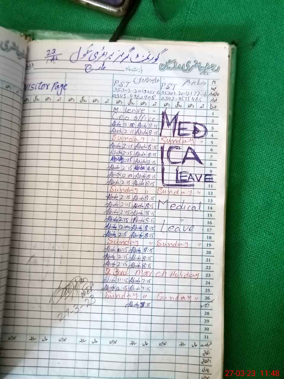 | Leave | Duty | Absent | Maternity | Medical | Ex- Pak |