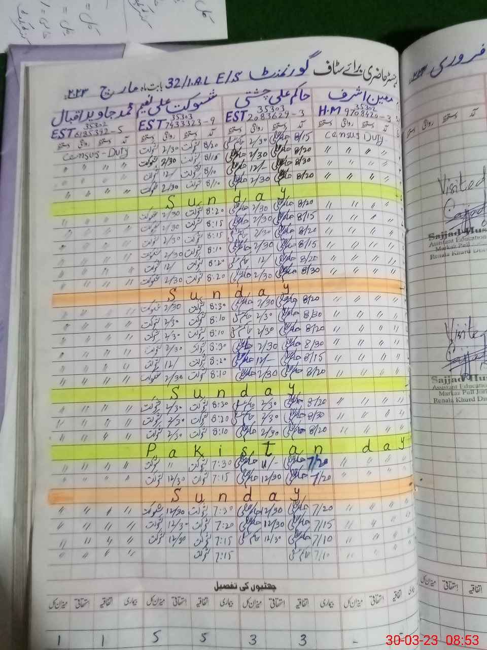| Name: Kh**** Ah**** Designation: (School Headmaster's/Headmistress's) EST (ENGLISH) Phone/Cell Number: 03**** |