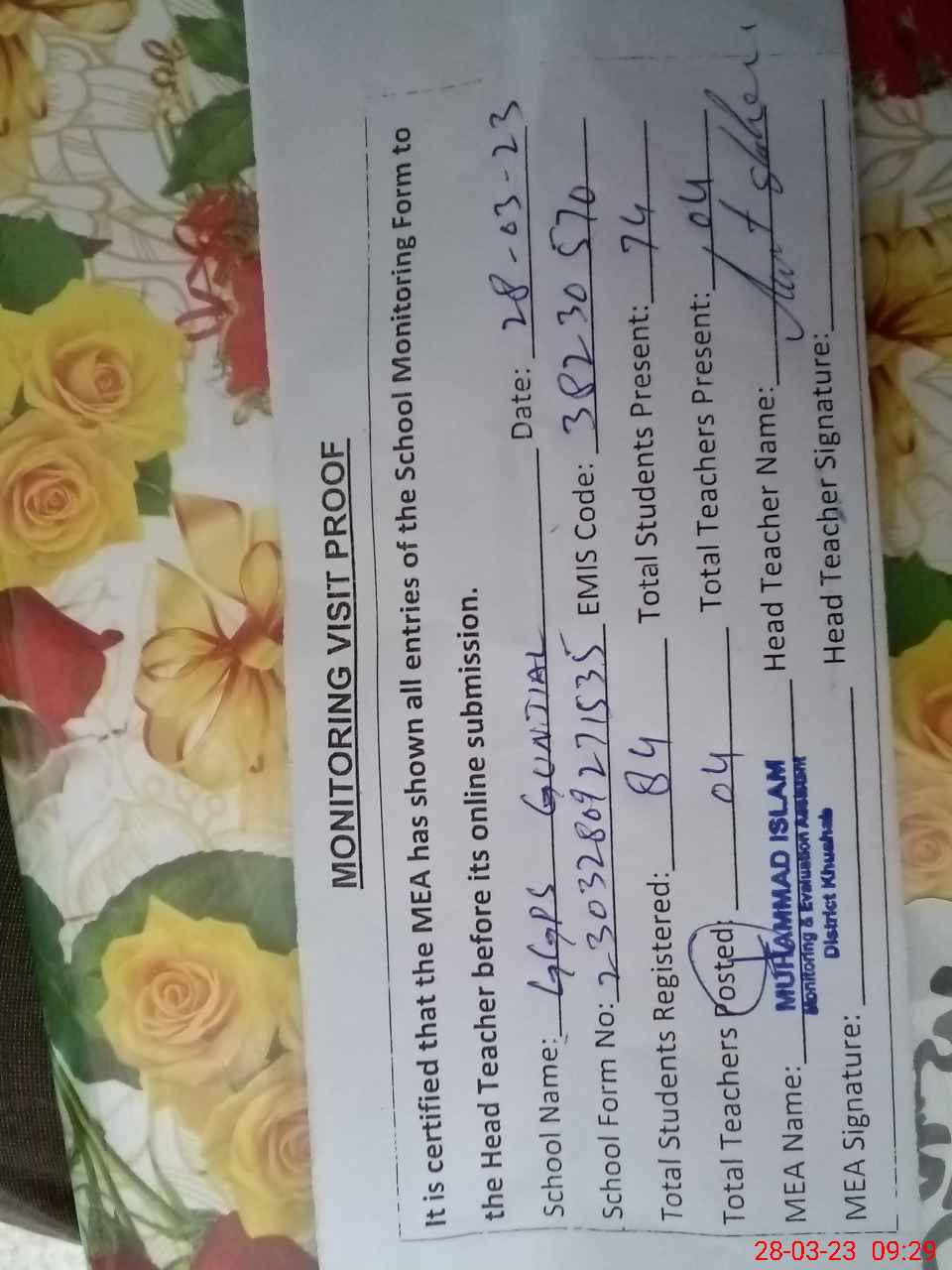 | EMIS Code: 38230570 | Name of School: GGPS GUNJIAL | |||