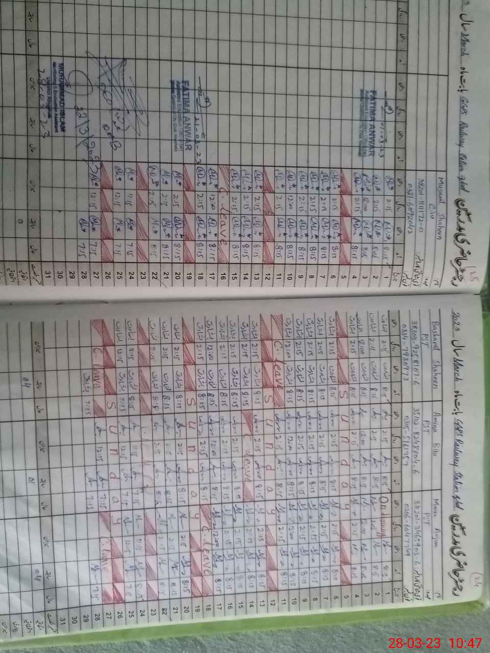 | CNIC | Full Name | Designation | R/C | Absence During Last Calender Month |
