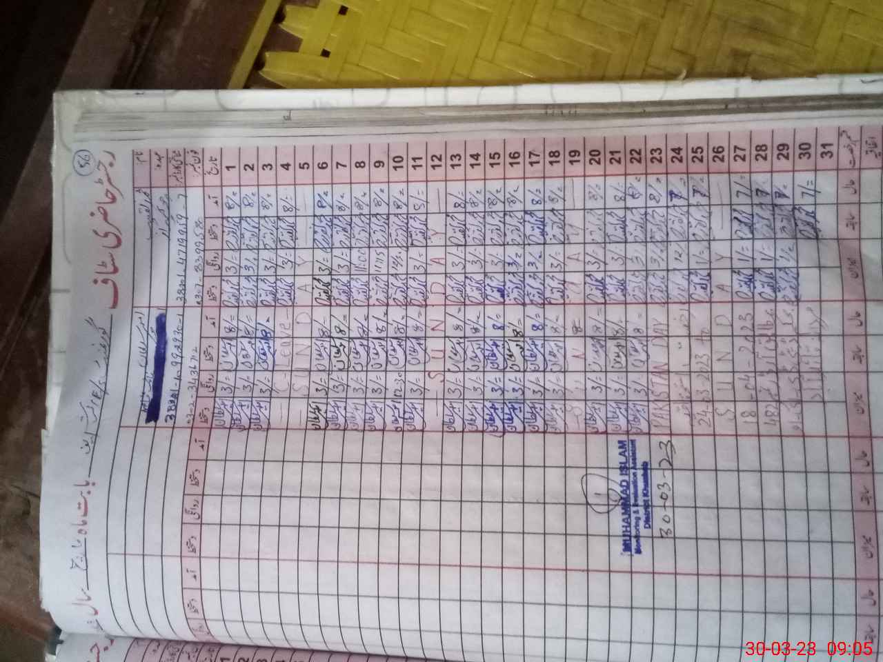 | Name: Mu**** Hu**** Designation: (School Headmaster's/Headmistress's) EST(AT Phone/Cell Number: 03**** |