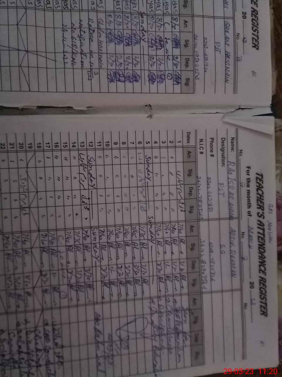 | CNIC | Full Name | Designation | R/C | Absence During Last Calender Month |