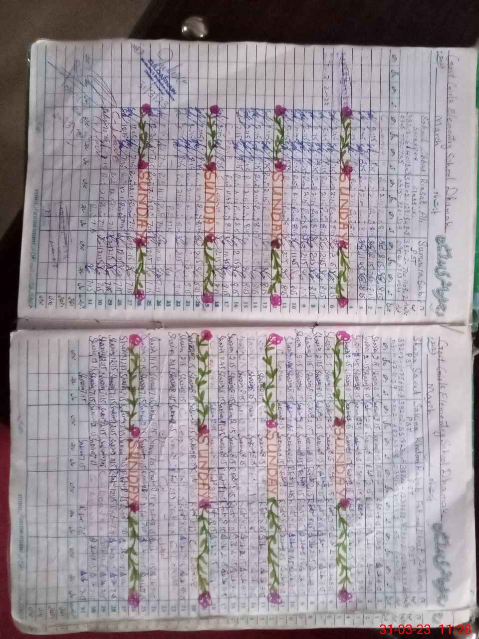 | No. of Students Present - Female | 5 | 0 | 18 | 22 | 26 | 24 | 24 | 20 | 38 | 30 | 21 | 228 | ||||