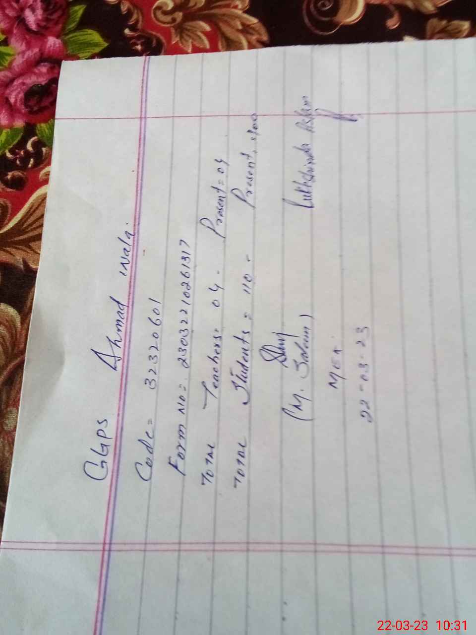 | Name: RU**** As**** Designation: (School Headmaster's/Headmistress's) ESE Phone/Cell Number: 03**** |