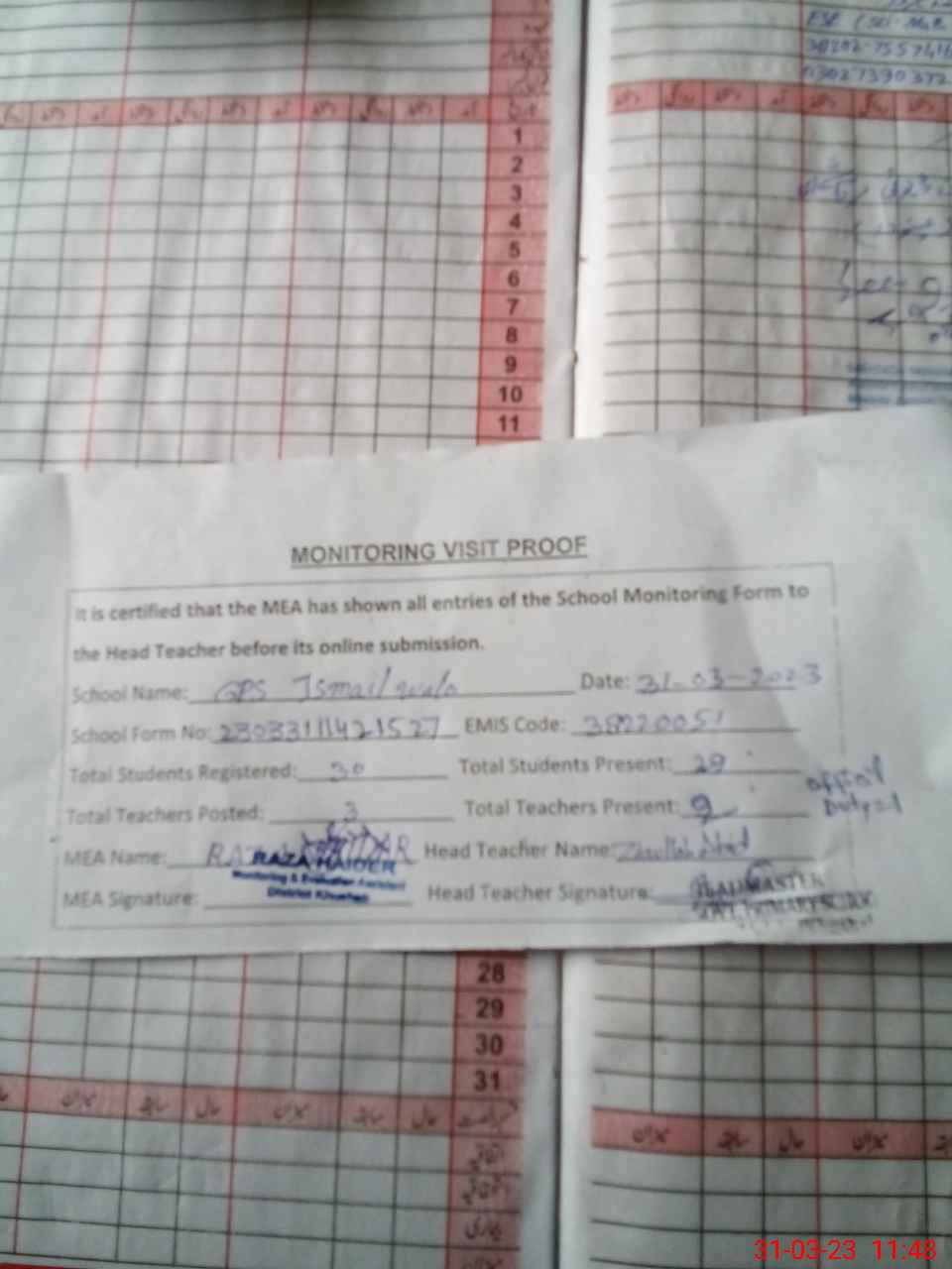 | EMIS Code: 38220051 | Name of School: GPS ISMAIL WALA | |||