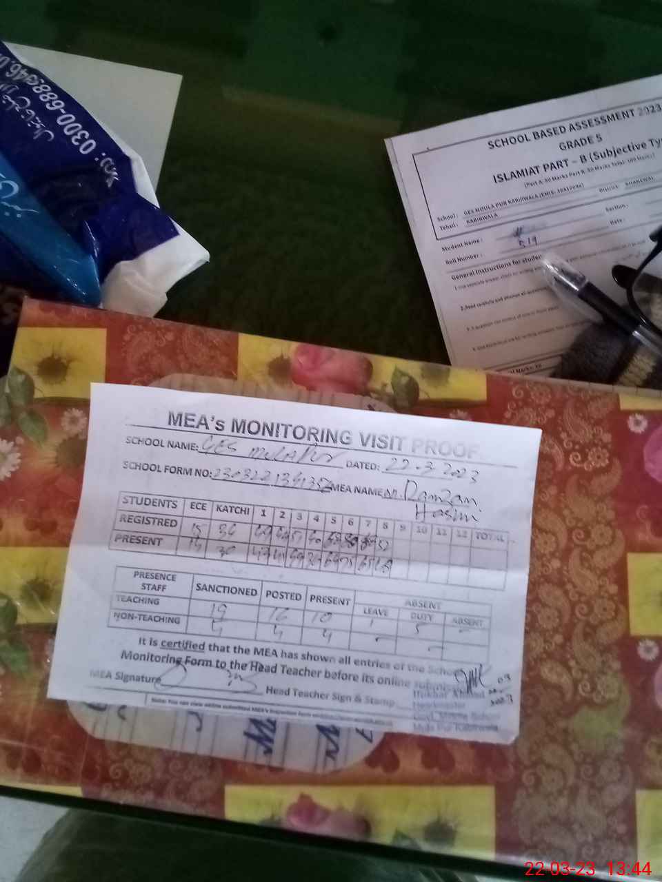 | EMIS Code: 36410046 | Name of School: GES MOULA PUR KABIRWALA | |||