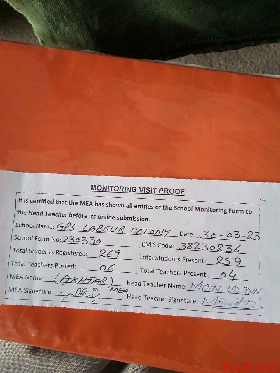 | EMIS Code: 38230236 | Name of School: GPS LABOUR COLONY | |||