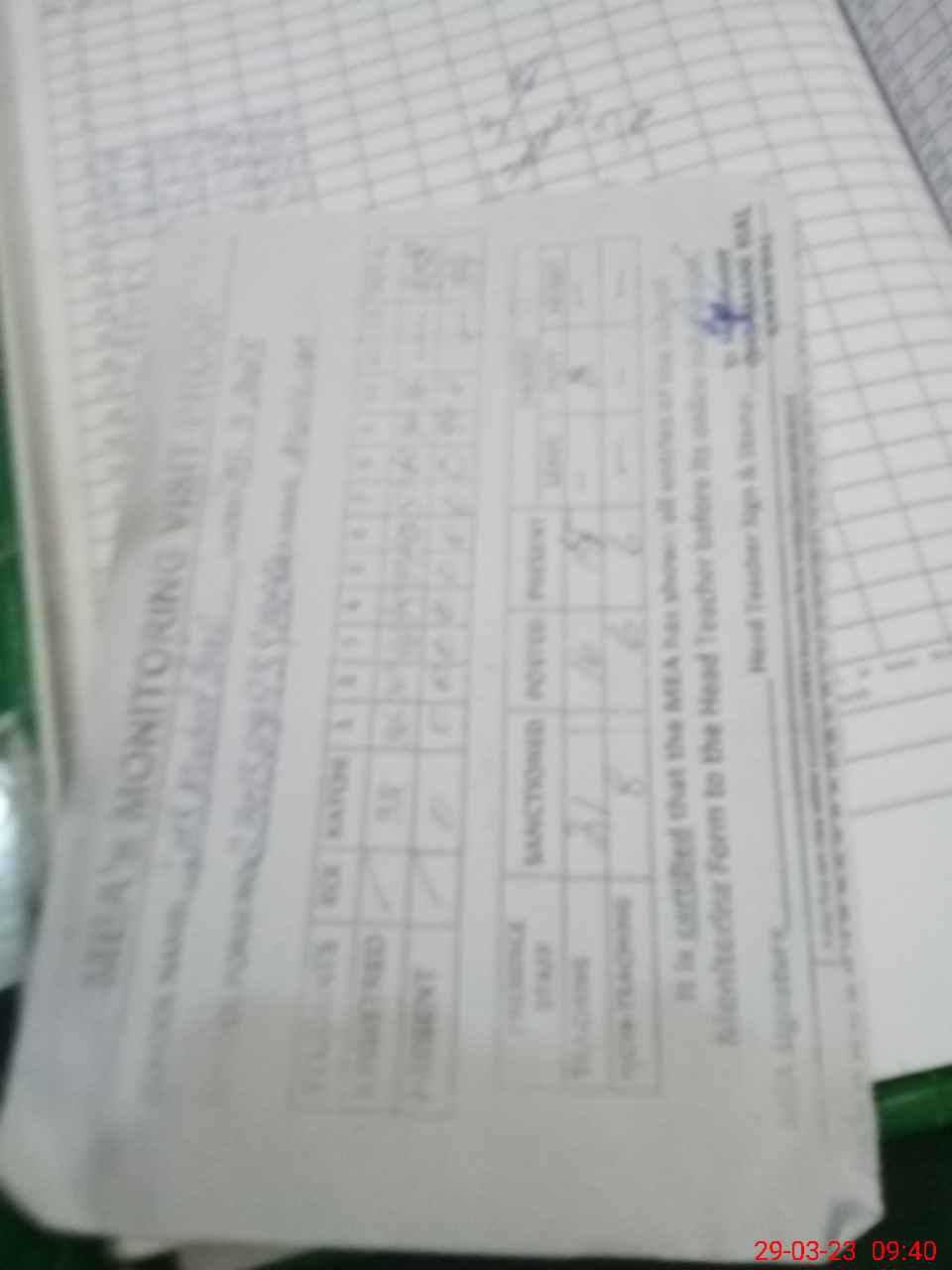 | Remarks (Use Separate Page if Required): Only 9thclas is present and other clases are found absent due to examination | |||||