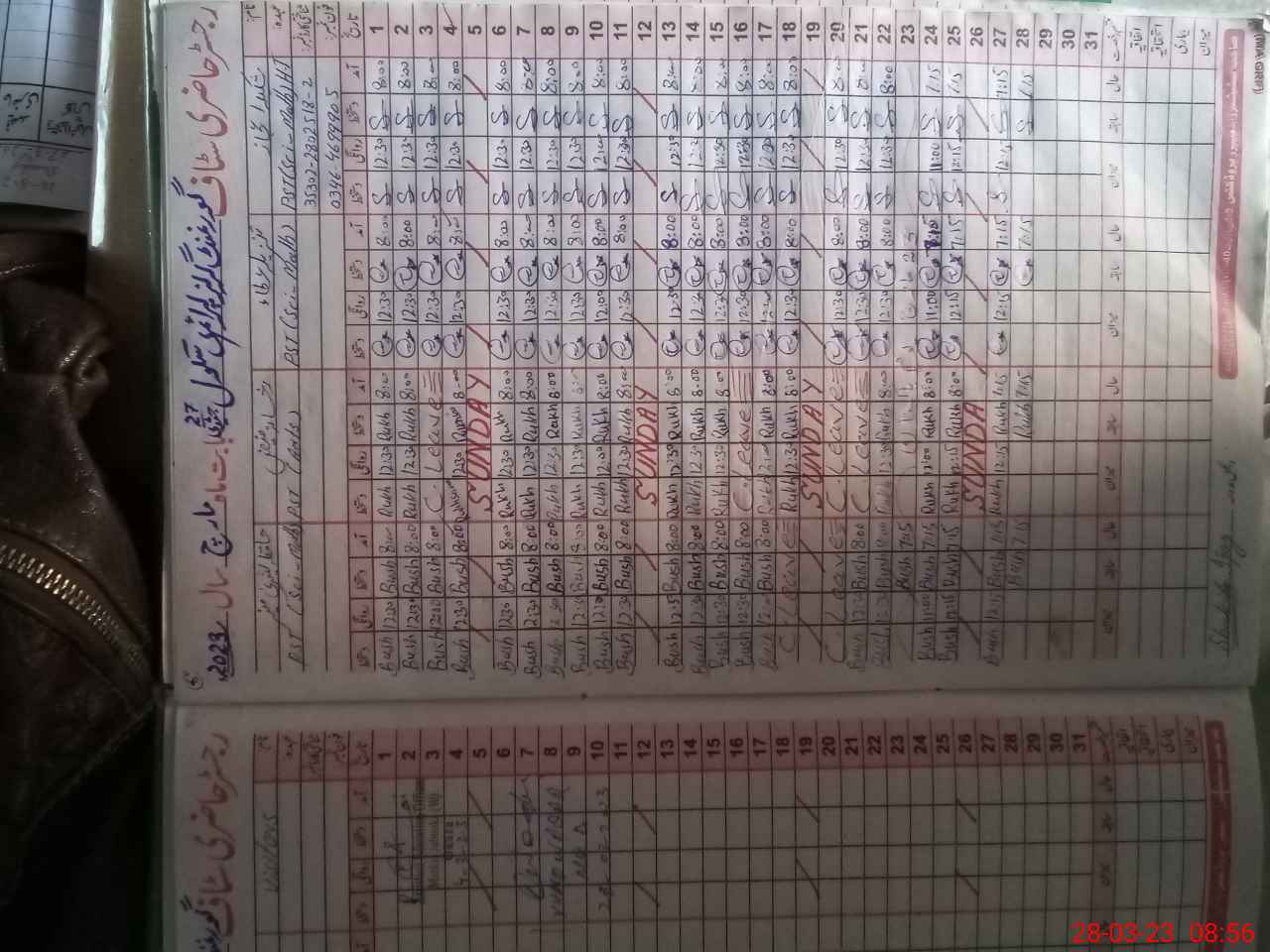 | CNIC | Full Name | Designation | R/C | Absence During Last Calender Month |