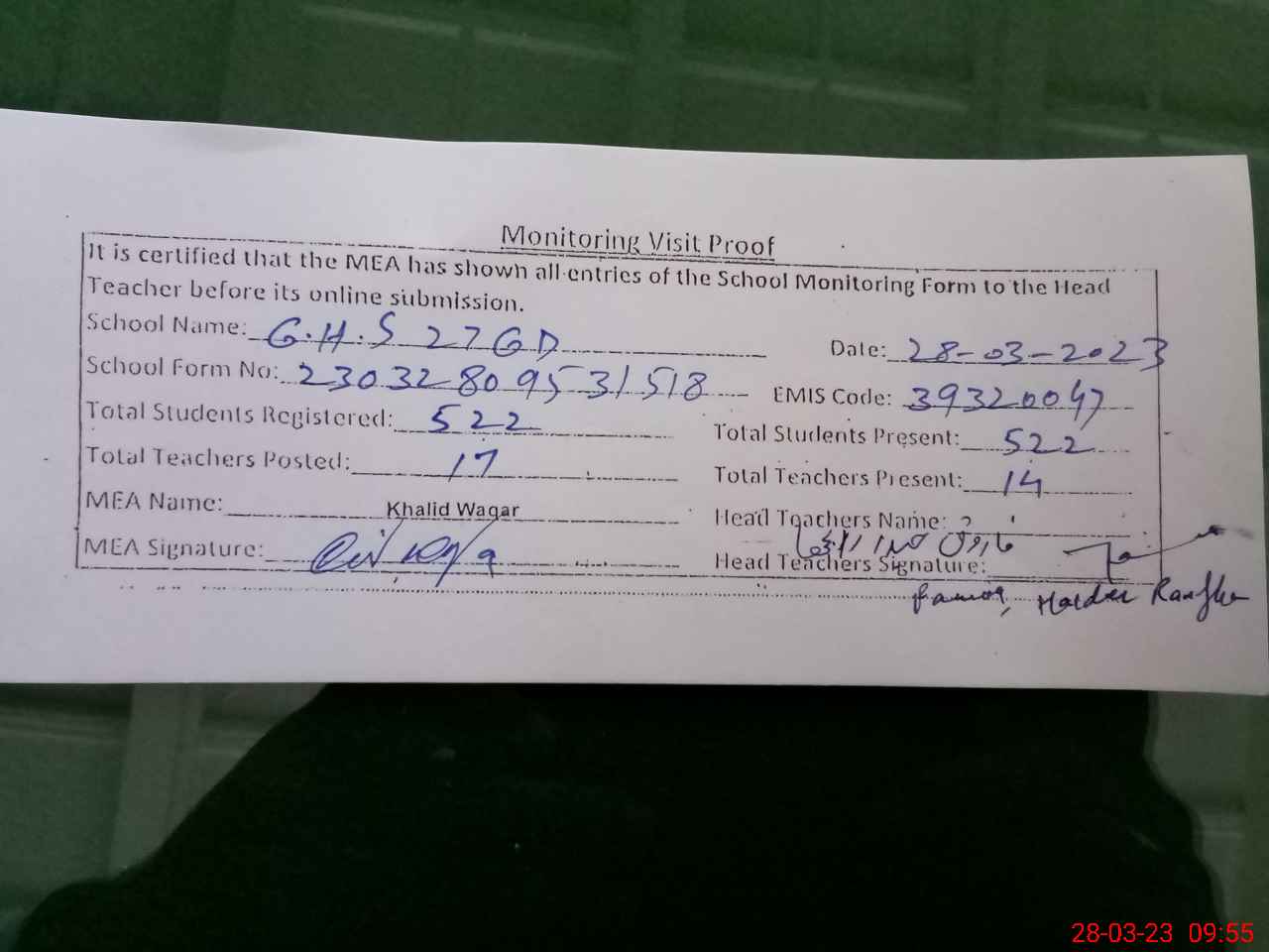| EMIS Code: 39320047 | Name of School: GHS 27/G.D | |||