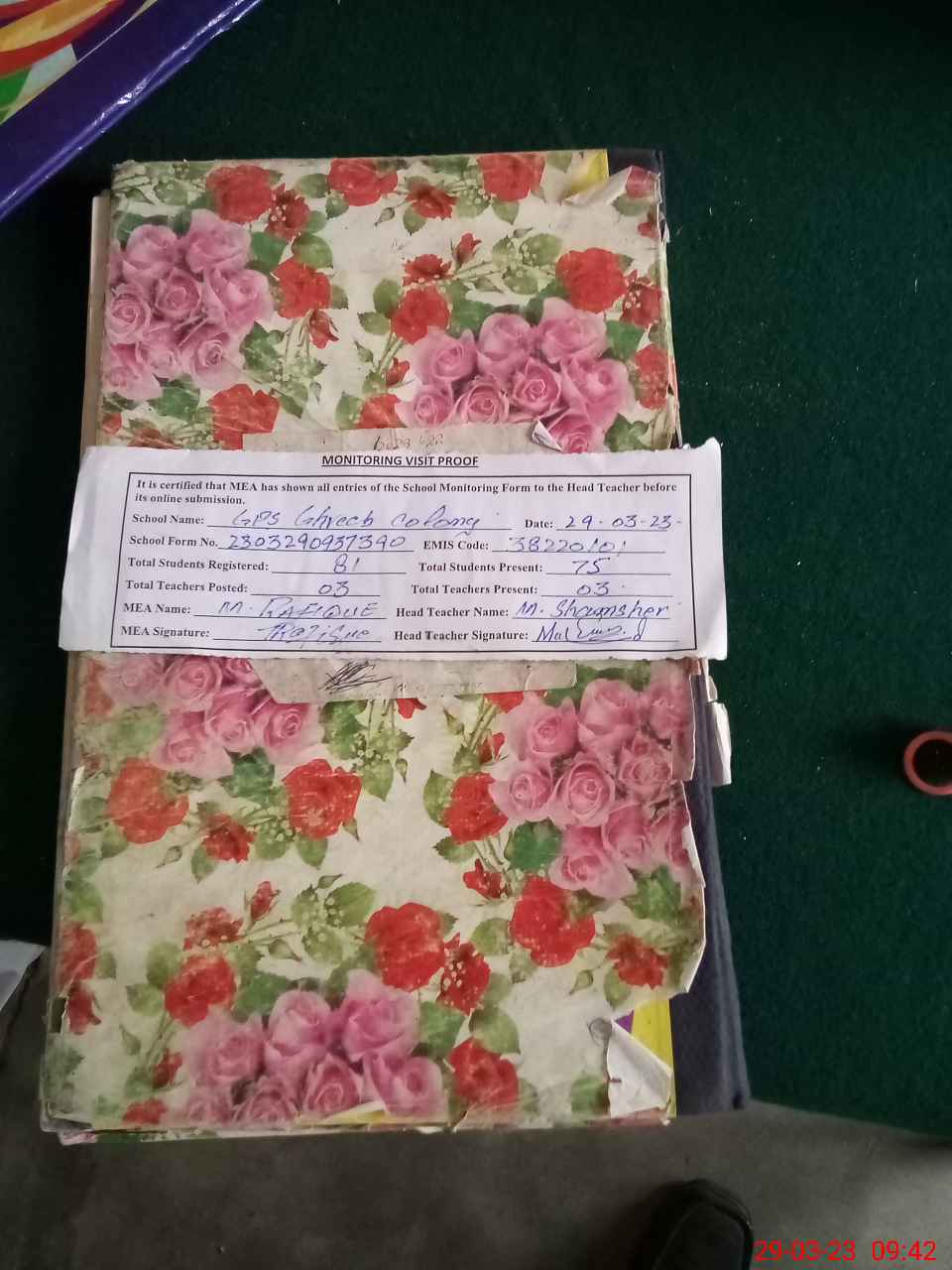 | EMIS Code: 38220101 | Name of School: GPS GHEREEB COLONY, ADHI KOT | |||