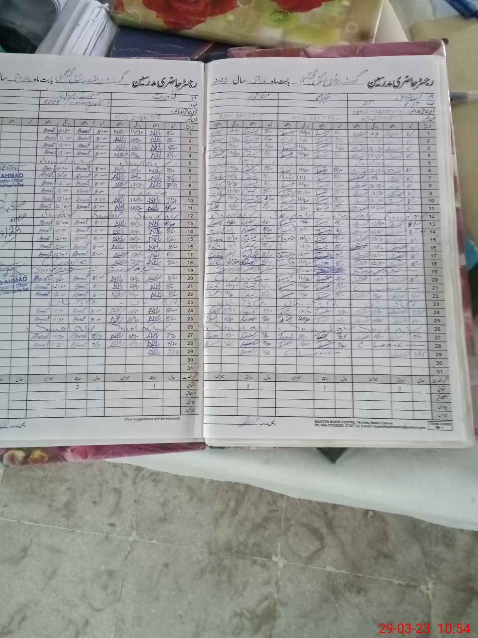 | CNIC | Full Name | Designation | R/C | Absence During Last Calender Month |